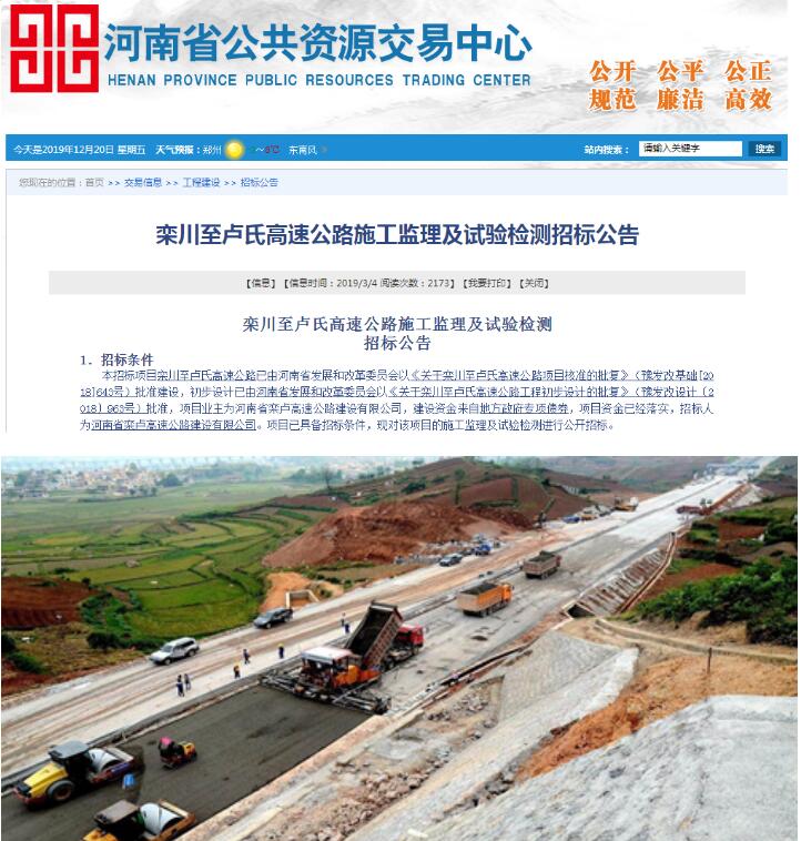 欒川至盧氏高速公路施工監(jiān)理及試驗檢測